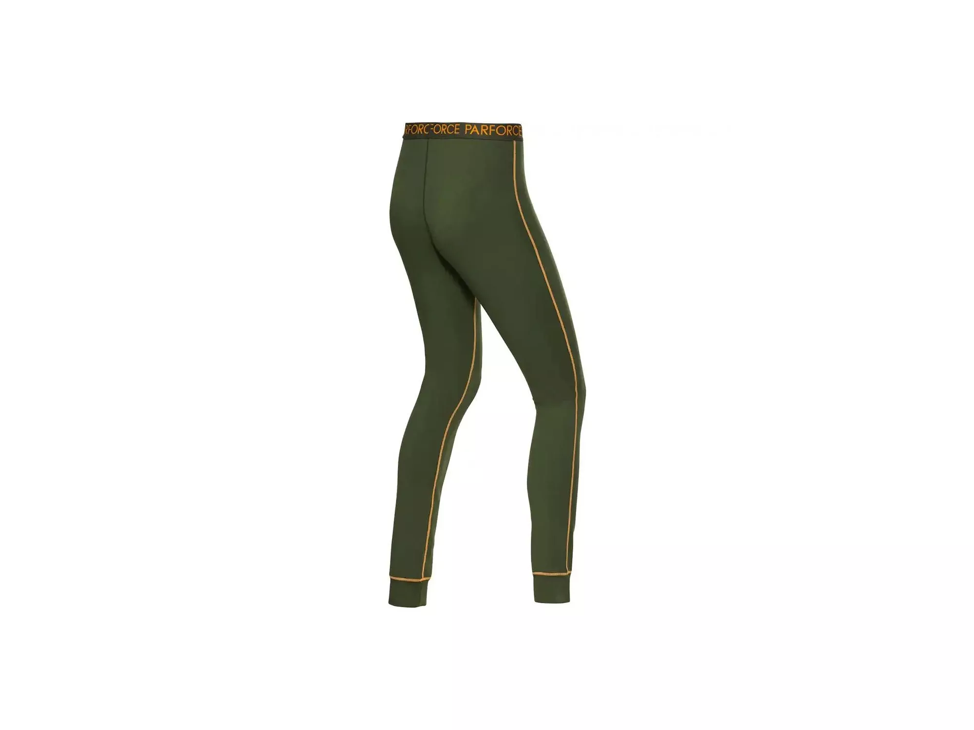Dlouhé termospodky Super Soft od PARFORCE z měkkého funkčního materiálu o tloušťce 240 g/m² zajišťují příjemnou tepelnou izolaci. Mají oranžově zbarvené kontrastní švy, měkce česaný materiál uvnitř a široký elastický pas s tkaným logem Parforce.