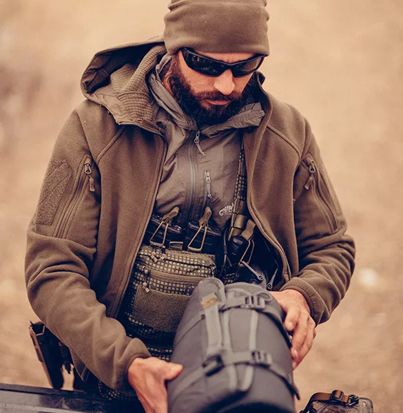 Materiál Hybrid Fleece má dvě vrstvy. Zvenku připomíná klasický fleece, ale zevnitř je to grid fleece, známý z Alpha Hoodie a Alpha Tactical Jackets. Je to materiál s charakteristickou jemnou kostkovanou strukturou silnějších, vyvýšených čtvercových kusů a tenčích mezer mezi nimi. Díky tomu je Patriot Mk2 lehčí a prodyšnější, a přitom Vás stále zahřeje. Větrací otvory pod pažemi na zip pomáhají s termoregulací.