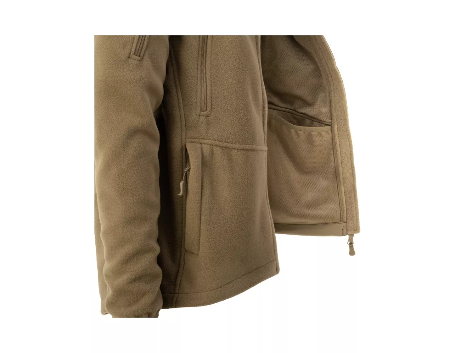 Materiál Hybrid Fleece má dvě vrstvy. Zvenku připomíná klasický fleece, ale zevnitř je to grid fleece, známý z Alpha Hoodie a Alpha Tactical Jackets. Je to materiál s charakteristickou jemnou kostkovanou strukturou silnějších, vyvýšených čtvercových kusů a tenčích mezer mezi nimi. Díky tomu je Patriot Mk2 lehčí a prodyšnější, a přitom Vás stále zahřeje. Větrací otvory pod pažemi na zip pomáhají s termoregulací.