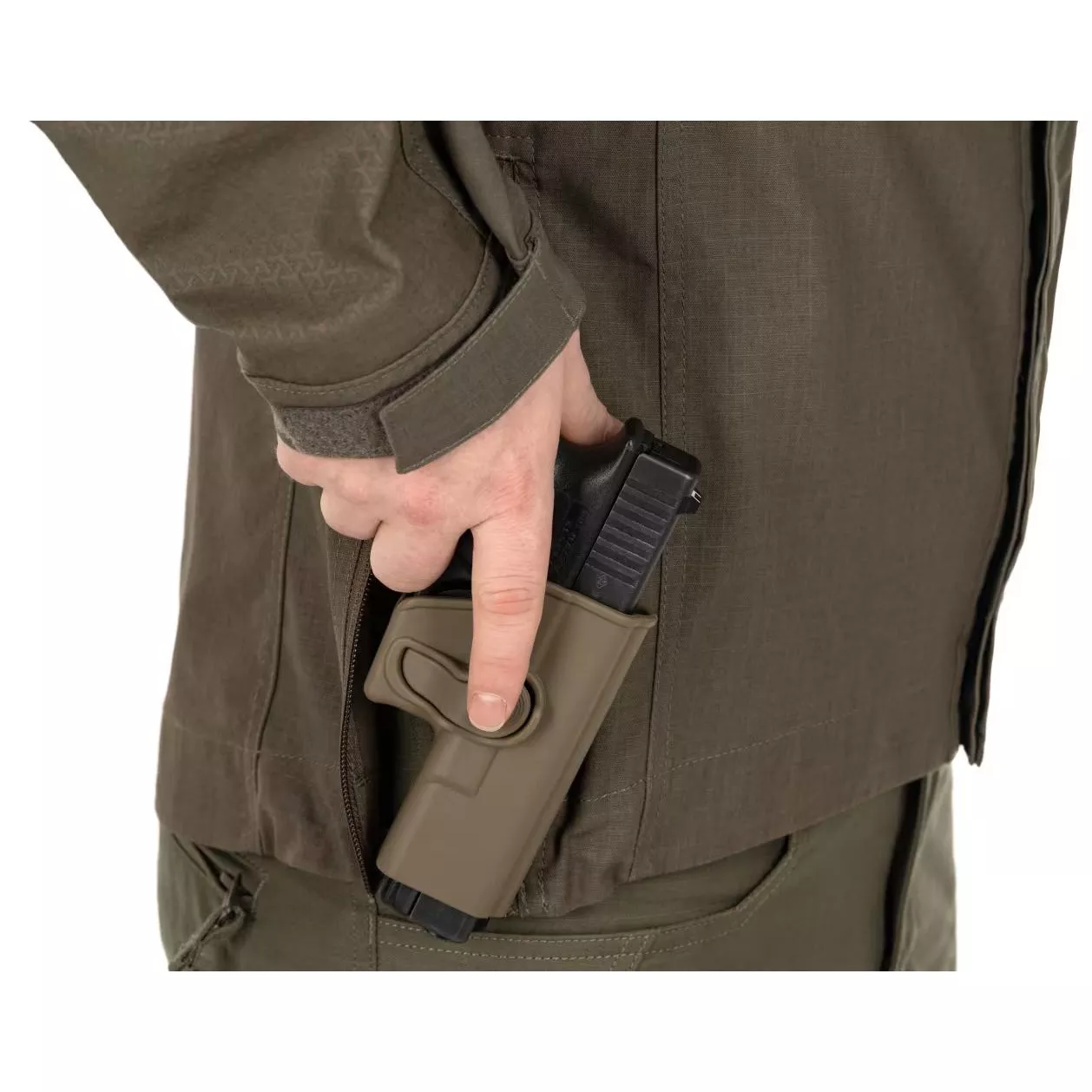 Na obou pažích se nachází úložná kapsa opatřená YKK reverzním spirálovým zipem. Uvnitř kapsy jsou k dispozici poutka pro upevnění vybavení nebo uložení zdravotnického vybavení. Kapsy na vnější části rukávu nahoře mají VELCRO® panely a popruhy pro připevnění indikátorů IFF, V-Lite® nebo jiných jednotek