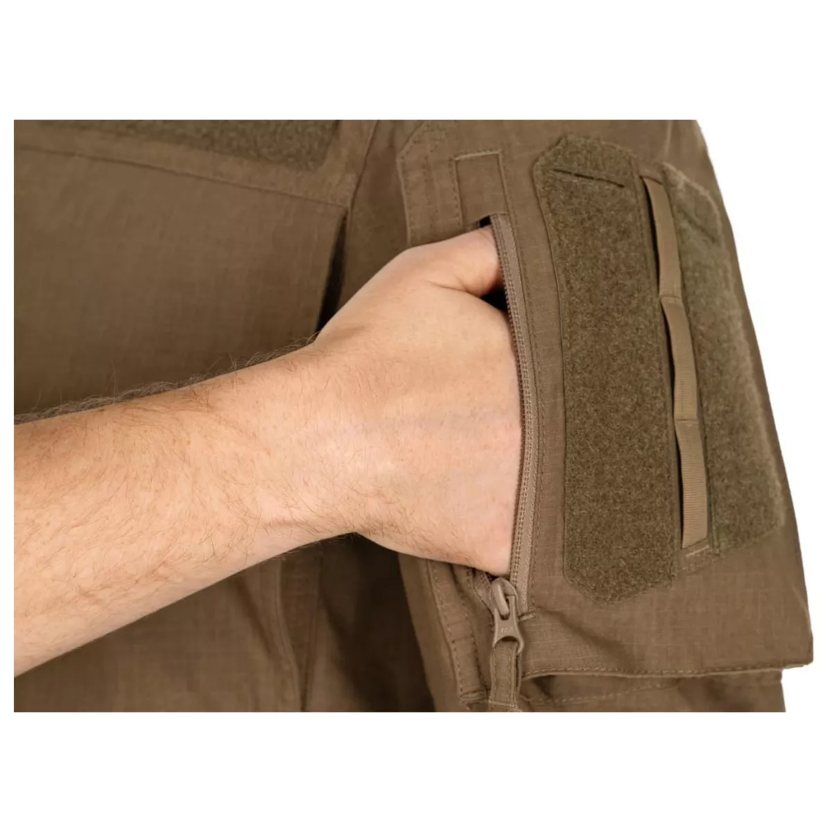 Na obou pažích se nachází úložná kapsa opatřená YKK reverzním spirálovým zipem. Uvnitř kapsy jsou k dispozici poutka pro upevnění vybavení nebo uložení zdravotnického vybavení. Kapsy na vnější části rukávu nahoře mají VELCRO® panely a popruhy pro připevnění indikátorů IFF, V-Lite® nebo jiných jednotek