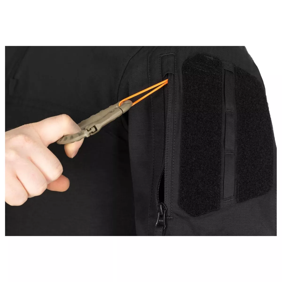 Na obou horních pažích se nachází nízkoprofilová úložná kapsa s YKK reverzním spirálovým zipem. Uvnitř kapsy naleznete smyčky, které slouží k bezpečnému uchycení vybavení nebo uložení předmětů první pomoci. Vnější horní část rukávu obsahuje panely Velcro® a popruhy pro připevnění indikátorů IFF, V-LITE® nebo jiné jednotky.