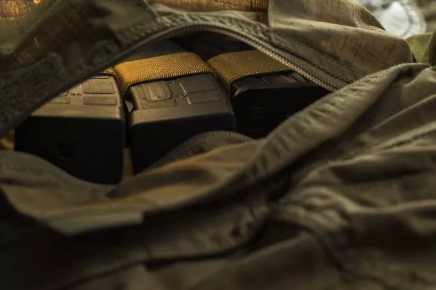 - stehenní kapsy jsou vybaveny vyjímatelnými držáky zásobníků pro útočnou pušku, PDW nebo pistoli a vnitřními kapsami pro organizaci uloženého materiálu
