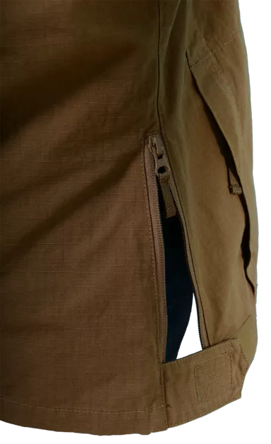 Na obou stranách je blůza opatřena odepínacími mezerami pro usnadnění přístupu ke služební pistoli na opasku. Na zadní straně je možné využít spodní kapuci k uchycení pláštěnky apod.