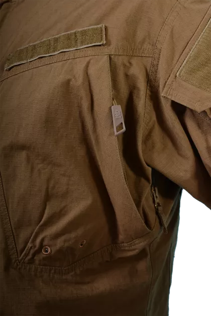Kapsy na rukávech jsou opatřeny vstupy z horní a boční strany. Při použití balistické vesty jsou k dispozici i přední náprsní kapsy. Jezdce zipu jsou zároveň umístěny mimo prostor pod balistickou vestou, aby nedocházelo k sekundárním zraněním při nárazu vesty do zipu.