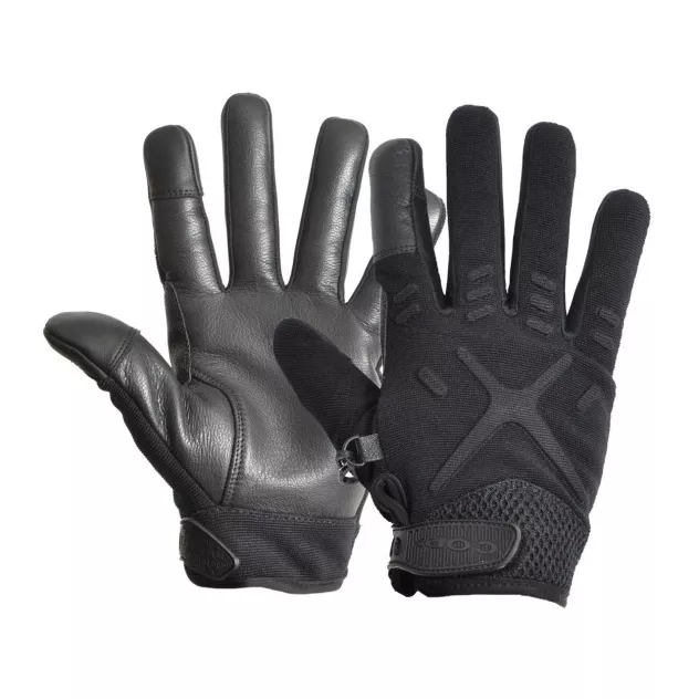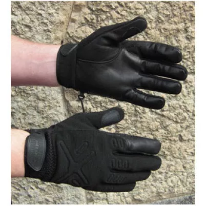 Jemná hovězí kůže na dlaňové straně rukavice zajišťuje lepší cit v rukou, který je potřebný při osobních prohlídkách, při manipulaci se zbraní a ostatních činnostech. Díky kožené dlaňové částí jsou lépe ošetřitelné od nečistot a méně náchylné k prosáknutí tekutin např. krve.