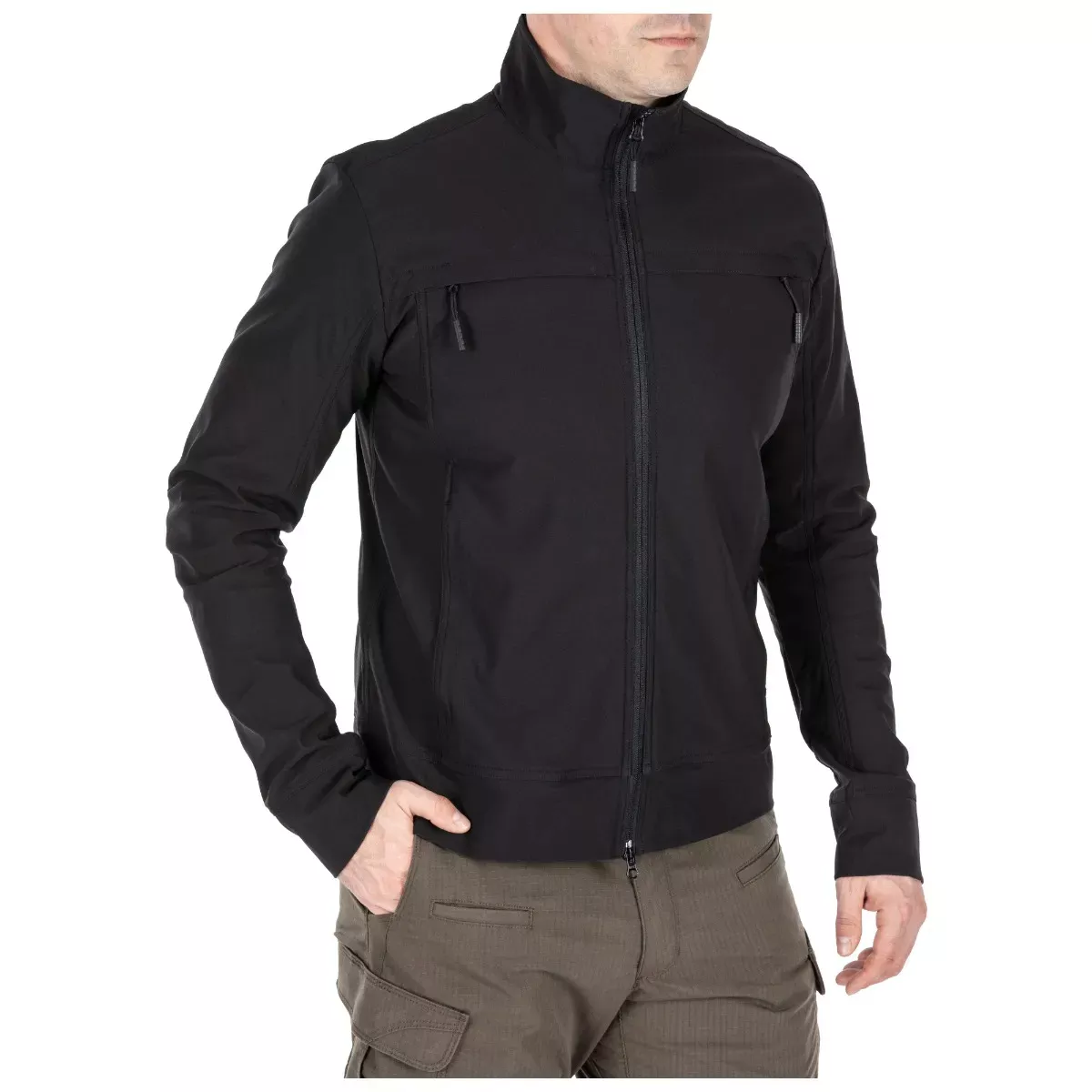 - Skryté kapsy na zip na hrudi s horizontálním vstupem