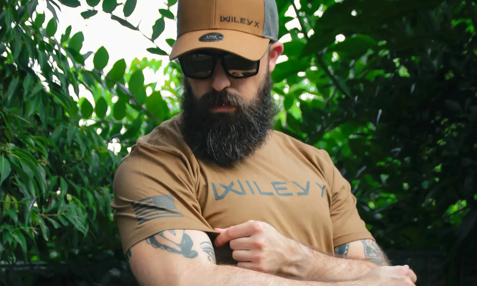 Tričko je vyrobeno z 60% bavlny a 40% polyesteru, což zajišťuje příjemný měkký pocit s maximálním pohodlím. Je navrženo s velkým kontrastním logem Wiley X uprostřed hrudi a štítkem WX na lemu trička. Na pravém rukávu má model potisk útočné vlajky USA, což znamená, že hvězdy vlajky míří dopředu a znázorňují pohyb vlajky, stejně jako je tomu na amerických uniformách.