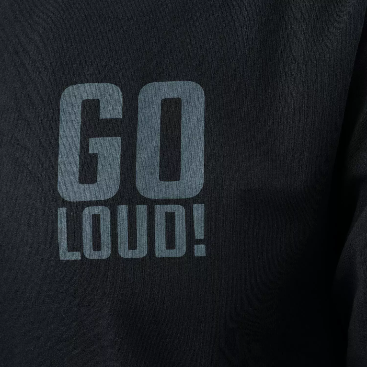 Dlouhý rukáv, vzor s pistolí s tlumičem a heslem "No Loud!" na černém pozadí.