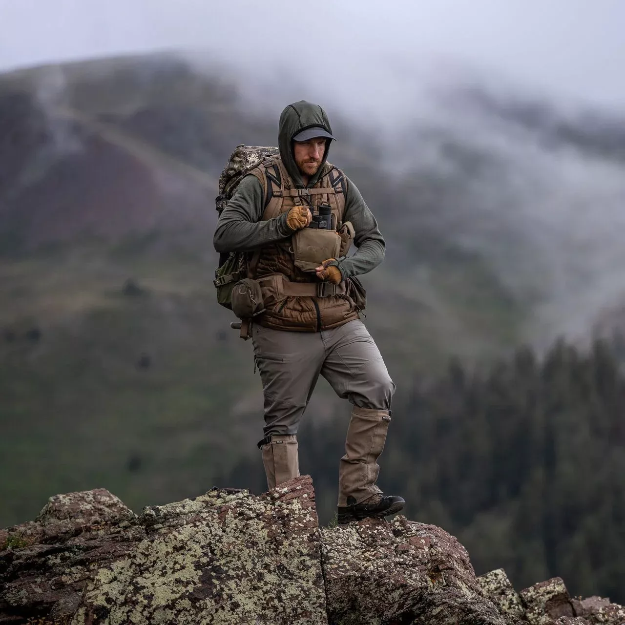 Modulární postroj Recon Bino Harness, navržený s ohledem na modularitu v první řadě, je založen na platformě hrudního postroje, kterou lze pomocí sady doplňkového příslušenství škálovat v závislosti na Vašich potřebách. Je vybaven magnetickým přístupem do pouzdra na dalekohled vpředu, snadno přístupnou velkou přední kapsou na zip a pružnými bočními kapsami.