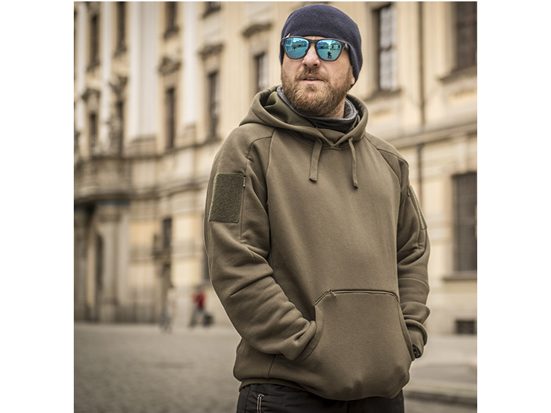 Mikina Urban Tactical Hoodie Lite (Kangaroo) je určena pro skryté operace v městském prostředí. Ocení ji také ti, kteří hledají klasicky šité oblečení, které umožní pohodlné nošení každodenního vybavení. Díky použití pružné látky nebude mikina omezovat pohyb a menší kapsy umístěné uvnitř klokaní kapsy vám umožní organizovat své vybavení a chránit jej před ztrátou během akce. Nad hlavní kapsou je kapsa na zip, která je ideální pro přenášení dokumentů nebo peněženky. Na obou pažích jsou diskrétní kapsy na drobnosti a panely na suchý zip, ke kterým můžete připevnit nášivky. Kombinace bavlny a polyesteru mikinu rychle vysuší, takže je vhodná třeba i na výlety v chladnějších dnech.