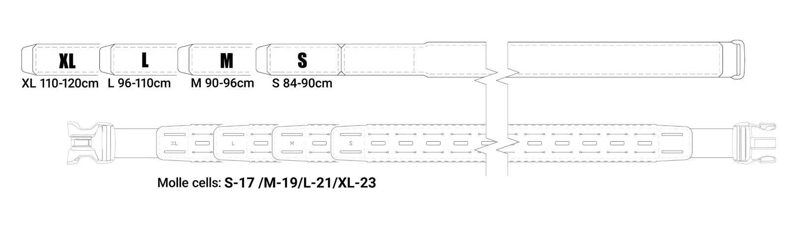 Kompatibilita a velikost: Standard Molle s šířkou 50 mm, kompatibilní s tek-lock a dalšími možnostmi montáže.