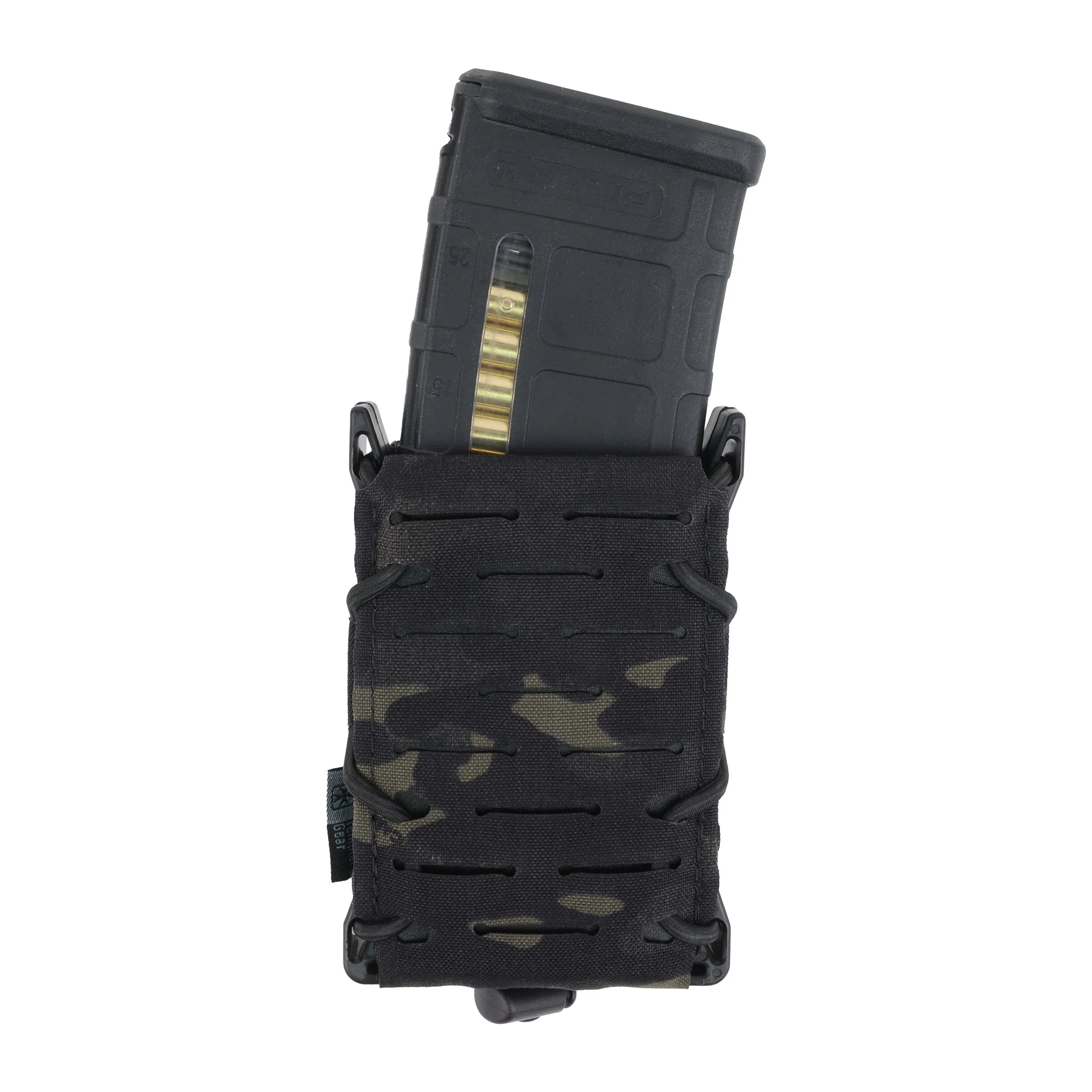 Vyrobeno z ABS plastu vyztuženého skelnými vlákny (vytištěno 3D tiskem) pro odolnost a nízkou hmotnost. Nastavitelné pro širokou škálu pistolových a PM zásobníků v různých výškách.