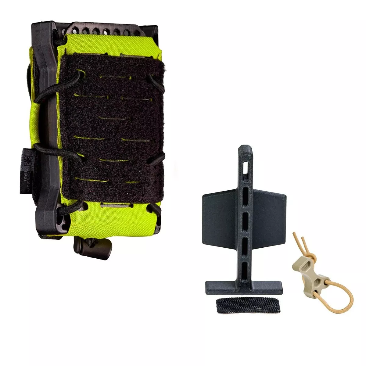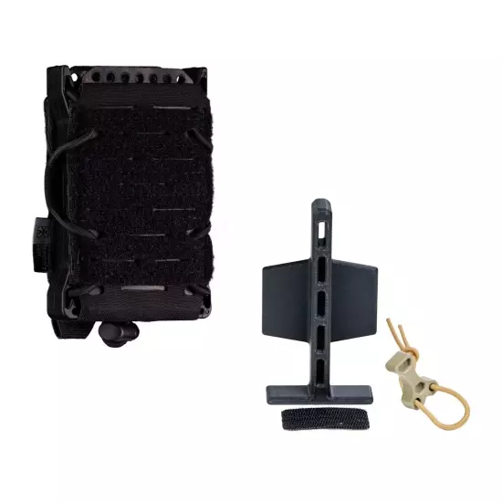 Vyrobeno z  ABS plastu vyztuženého skelnými vlákny (vytištěno 3D tiskem)  pro odolnost a nízkou hmotnost. Nastavitelné pro širokou škálu pistolových a PM zásobníků v různých výškách.