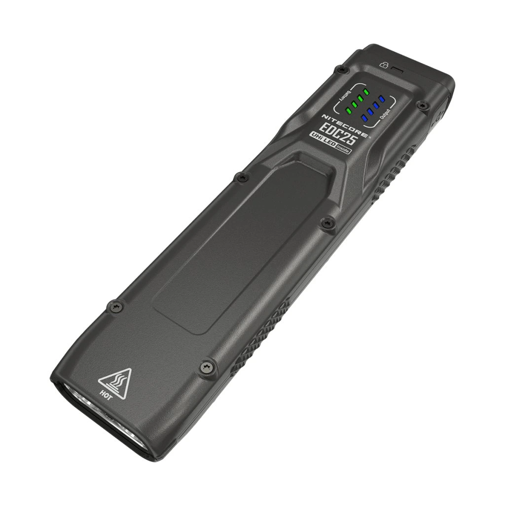 To je ochrana proti nechtěnnému propálení např. kalhot uživatele. Svítilna disponuje 4 světelnými režimy svitu a dvěmi speciálními módy. To je tzv. LUMIN SHIELD (FLOODLIGHT - světelný štít), kdy EDC35 svítí výkonem 5 000 lumenů intenzivního širokého světla vhodného pro oslnění útočníka nebo propátrání bližších vzdáleností jako jsou chodby a místnosti. Vhodné pro použití např. se zbraní. Druhý režim SEARCH (Spotlight) s výkonem 3 000 lumenů spíše bodového dalekonosvého světla slouží pro nasvícení dlouhých vzdáleností. Vestavěný Li-Ion akumulátoru velikosti 21700 o kapacitě 6000mAh je napájen přes integrovaný micro USB-C konektor zabudovaný přímo ve svítilně. Ten je chráněn rotačním ochranným krytem. Pod tímto prstencem se nachází i indikátor stavu nabitosti akumulátoru. NITECORE EDC35 má tělo vyrobené z hliníku vojenské kvality ze série 7000. Při své délce svítilny 124,3 mm má EDC35 hmotnost 171 g. Stupeň krytí IP68 to znamená odolná vůči pádu z výšky 2 metrů a vodeodolní do hloubky až 2 metrů.
