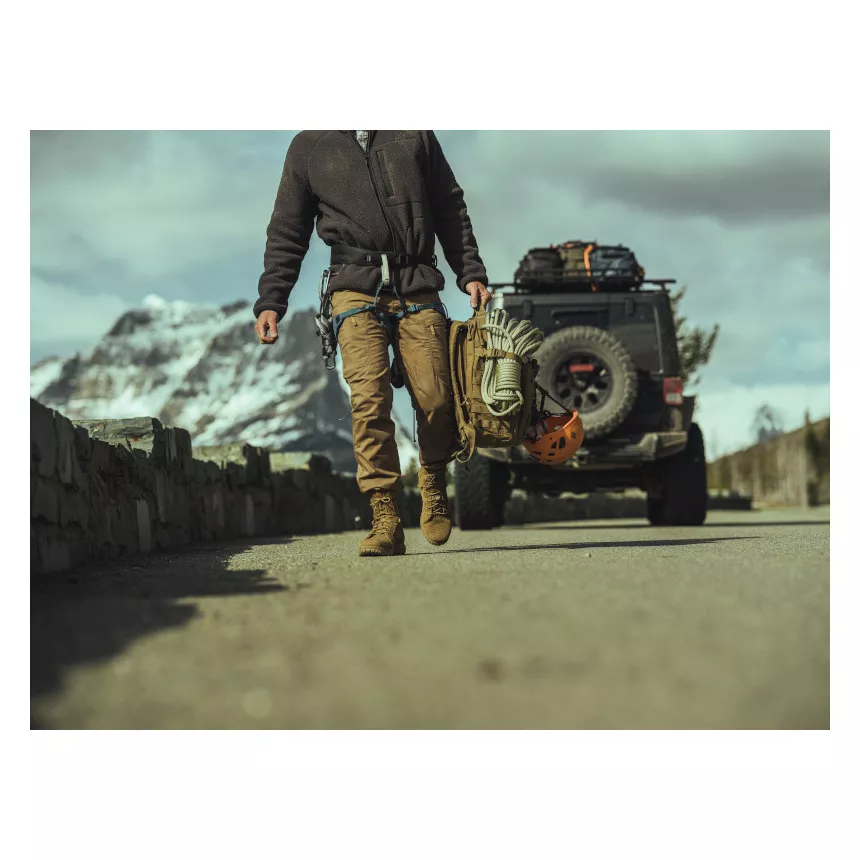 Taktické kalhoty 5.11 Ridge Pant jsou vyrobeny ze směsi polyesteru a bavlny s mechanickou strečovou tkaninou Flex-Tac®, která zajišťuje odolnost a flexibilitu. Kontrastní tkanina je vyrobena ze směsi polyesteru a elastanu v plátnové vazbě s DWR úpravou. Kapsa je vyrobena ze směsi polyesteru a bavlněného popelínu. Pánské kalhoty Ridge Pant mají celkem osm kapes, včetně šikmých kapes na ruce s vyztužením pro nože, praktických kapes na zadním sedlu, zadních kapes a cargo kapes se zapínáním na zip a s vnitřními přepážkami. Jezdecký klínek a kloubová kolena umožňují snadný pohyb, zatímco kapsa na klíč na manžetě na vnitřní straně lemu levé nohy zajišťuje, že Vaše nezbytnosti zůstanou v bezpečí. Kalhoty jsou zakončeny výšivkou loga 5.11 Tactical® na zadním poutku na opasek.