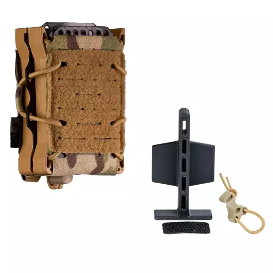 Vyrobeno z ABS plastu vyztuženého skelnými vlákny (vytištěno 3D tiskem) pro odolnost a nízkou hmotnost. Nastavitelné pro širokou škálu pistolových a PM zásobníků v různých výškách.