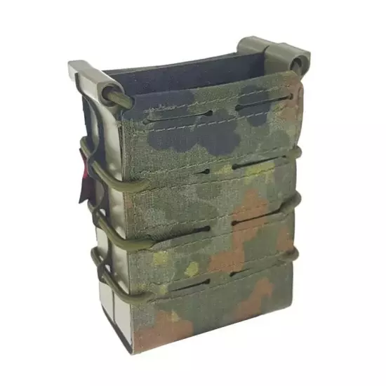 Univerzální samosvorná sumka s laserem řezaným MOLLE systémem. Tvar sumky udržuje postranní polymerový rám. Díky důmyslnému systému svoru pojme sumka většinu puškových zásobníků včetně zásobníků pro AR, AK i SA58. Pouzdro zajišťuje zásobník samosvorem, takže není potřeba žádná další pojistka, jako krycí chlopeň, nebo zajišťující šňůrka. Laserem řezaná Molle vazba poskytuje nižší profil sumky a elegantní vzhled.