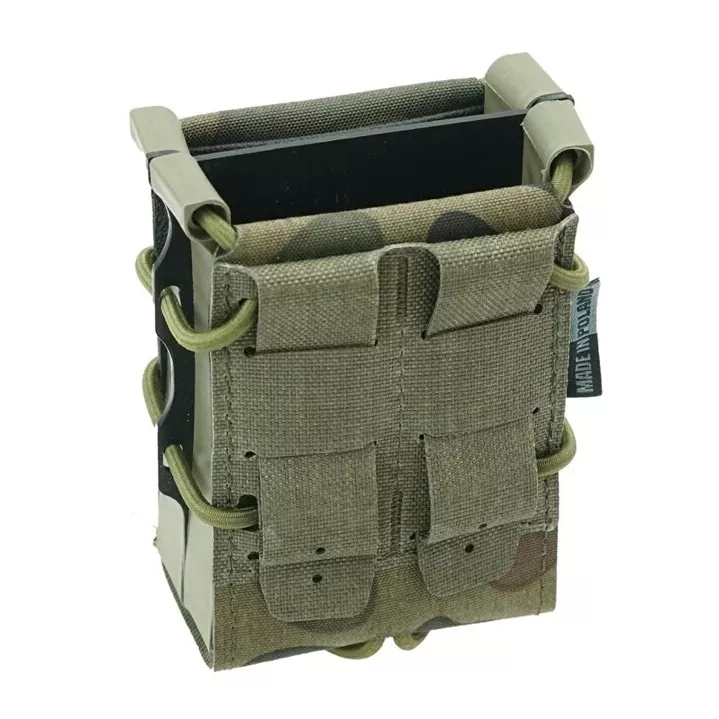 Univerzální samosvorná sumka s laserem řezaným MOLLE systémem. Tvar sumky udržuje postranní polymerový rám. Díky důmyslnému systému svoru pojme sumka většinu puškových zásobníků včetně zásobníků pro AR, AK i SA58. Pouzdro zajišťuje zásobník samosvorem, takže není potřeba žádná další pojistka, jako krycí chlopeň, nebo zajišťující šňůrka. Laserem řezaná Molle vazba poskytuje nižší profil sumky a elegantní vzhled.