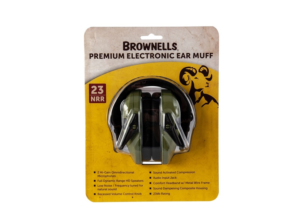 Střelecká sluchátka s elektronickým příposlechem brandovaná Brownells a vyrobená Walker's. Nízkoprofilový design zručuje pohodlné přilícení a dva vysoce kvalitní prostorové mikrofony a reproduktory ve sluchátkách poskytují výborné zprostředkování okolních zvuků.