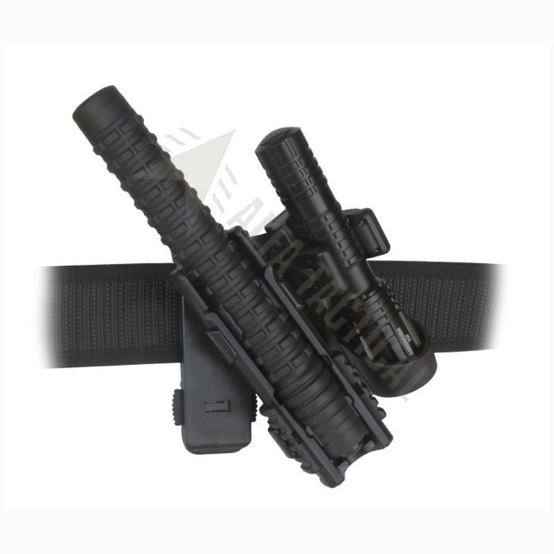 - Dvojité plastové otočné pouzdro je sestaveno z pouzdra SH-121 (pro obušek délky 16", 18" nebo 21") a z pouzdra LHU-14 (pro svítilnu) spojených speciálním adaptérem.