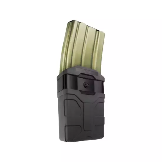 Univerzální rotační samosvorné pouzdro určené pro nošení naprosté většiny (Magpul, ISD, ProMag, …) kovových i plastových zásobníků do zbraní AR-15 / M4 / M16 v ráži 5.56 / .223 Rem. Promyšlená konstrukce s fixační pružinou umožňuje rychlé vyjmutí zásobníku při tzv. bojovém přebití. Pomocí 3 vymezovacích podložek, které se dodávají s pouzdrem, si může každý uživatel sám nastavit požadovanou přítlačnou sílu zásobníku.