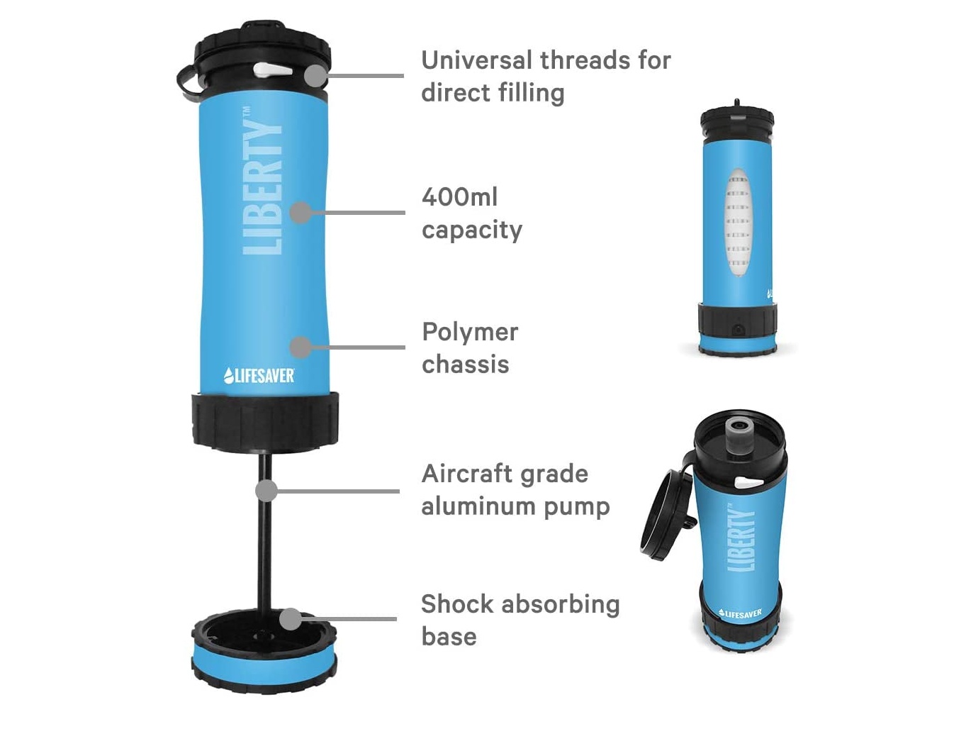 S využitím stejné pokročilé filtrační technologie jako původní láhev LifeSaver je láhev na čištění vody LifeSaver Liberty ™ menší, lehčí a univerzálnější, avšak stále robustní a snadno použitelná. Nejlepší láhev na čištění vody pro outdoorové nadšence, cestovatele, batůžkáře nebo kohokoli, kdo potřebuje spolehlivý zdroj pitné vody.