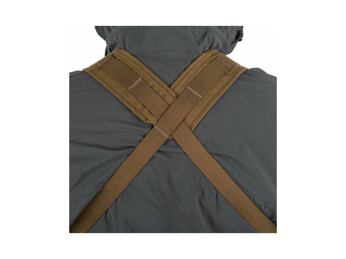 - Smyčky na ramenních popruzích pro kabely, antény a hydratační systém