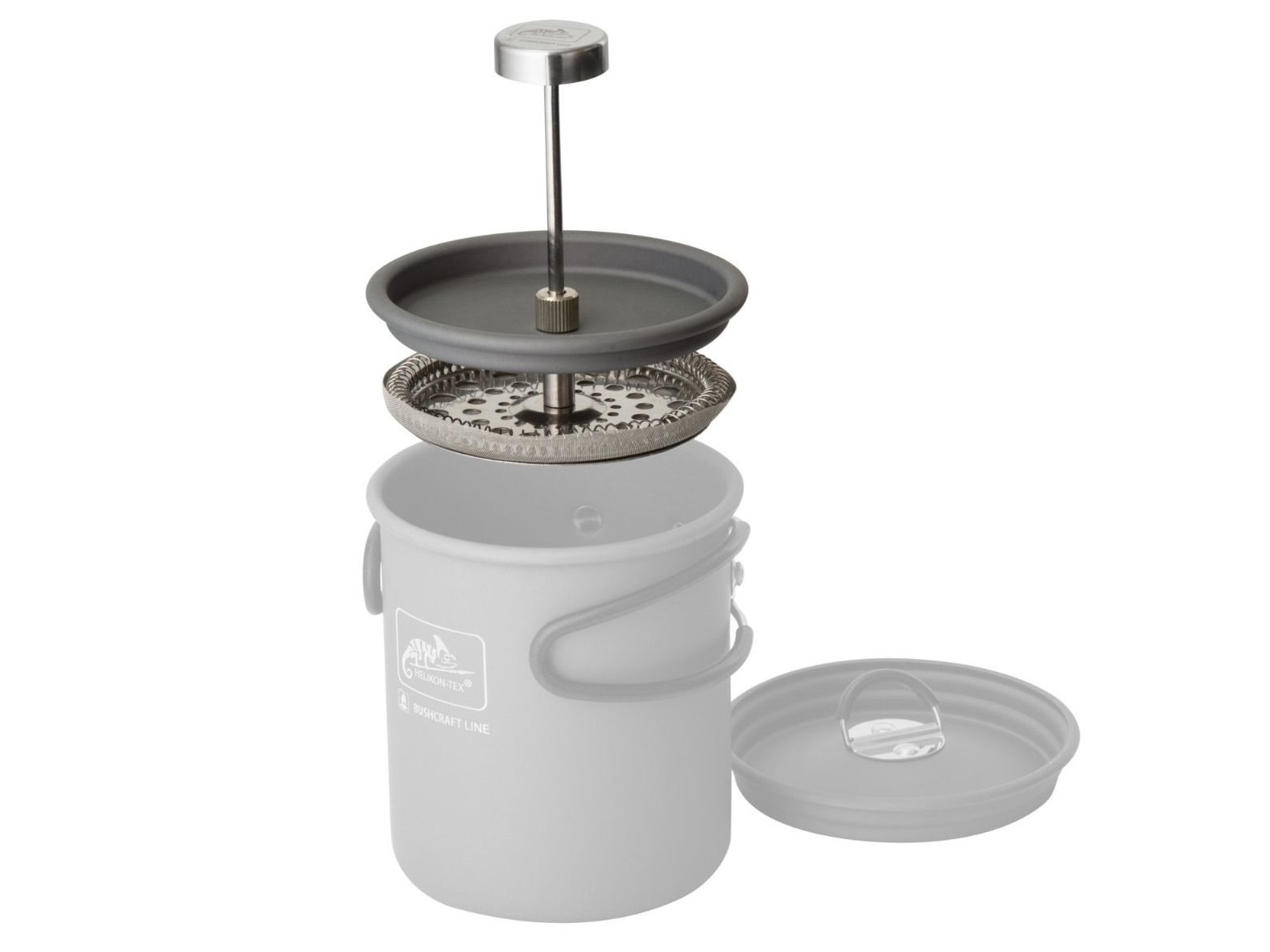 Coffee Press je víko s vestavěným filtrem na přípravu kávy. Díky systému dvojitého filtru si můžeme být jisti, že nápoj, který připravujeme, bude ideální k pití. Kompatibilní s Helikon-Tex CAMP CUP.