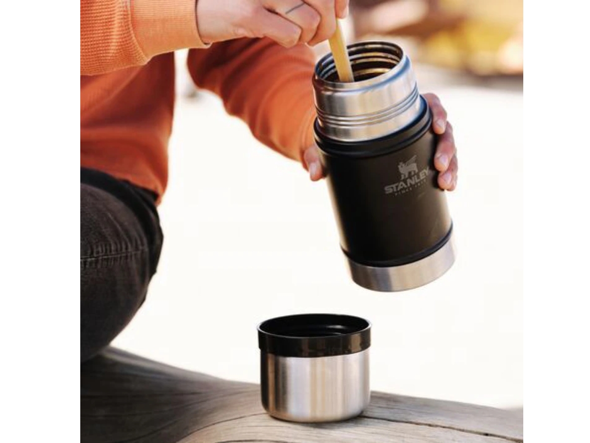 Chodíte rádi do míst, kde nejsou restaurace? Pořiďte si společníka - jídelní termosku STANLEY! Tato má objem 700ml a je ze série Classic, v černé mat barvě.