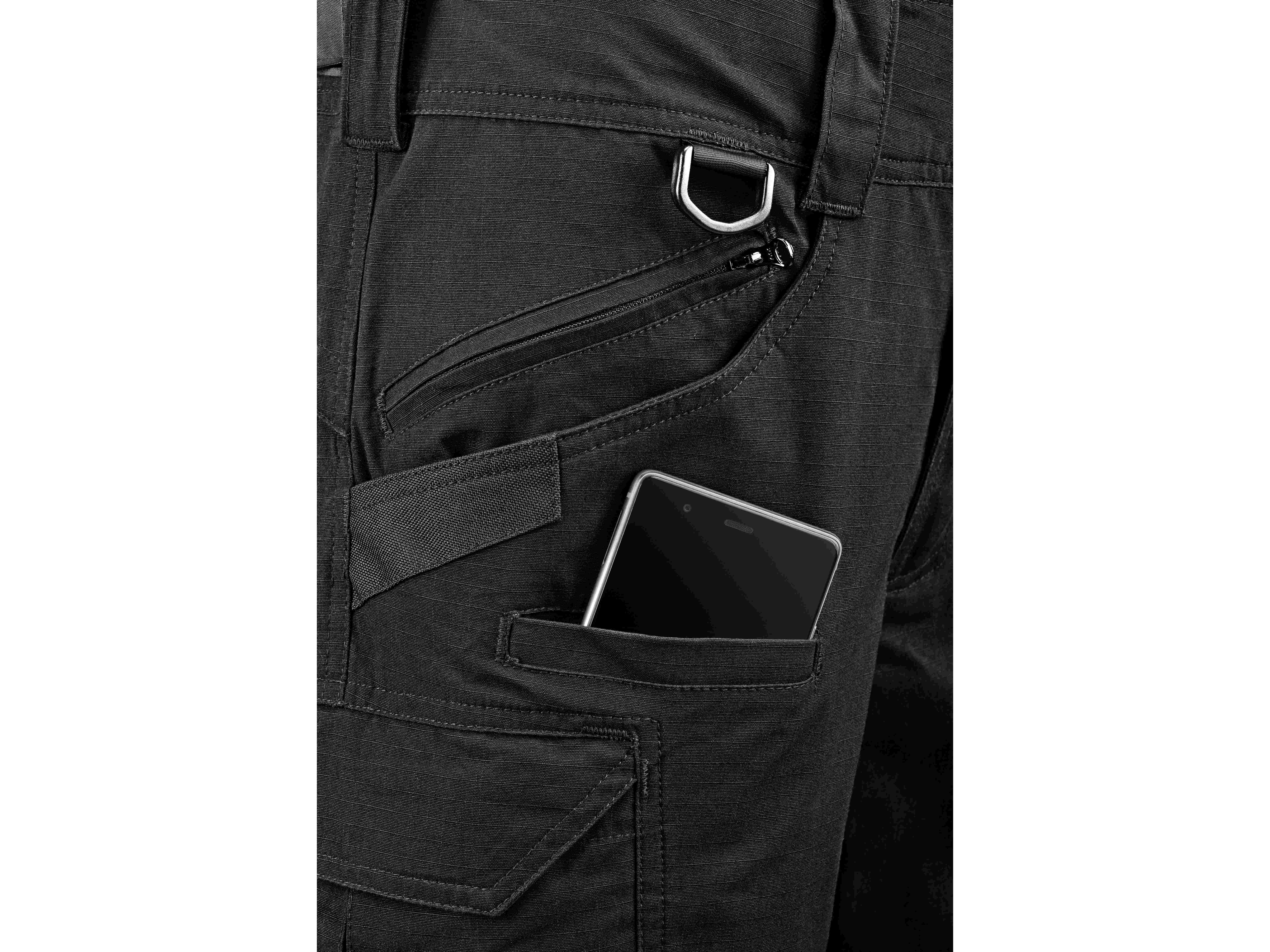 Taktické kalhoty Predator splňují všechny běžné potřeby vyžadované v taktické oblasti. Velikost je nastavitelná v pase pomocí vnitřního pásku se zapínáním na suchý zip. Poutka na opasek umožňují použití taktických opasků. V pase vpředu jsou upevněny dva D-kroužky z odolného polymeru, které jsou užitečné pro upevnění háčků. Přední kapsy jsou vyztuženy vrstvou Cordura® pro ukotvení spon (nůž, nástroje atd.). Dále jsou tu nízkoprofilové kapsy např. na telefon a velké kapsy pro přepravu osobních věcí. Šířku kalhot ve výšce kotníků reguluje popruh, který umožňuje pohodlné používání s různou obuví.