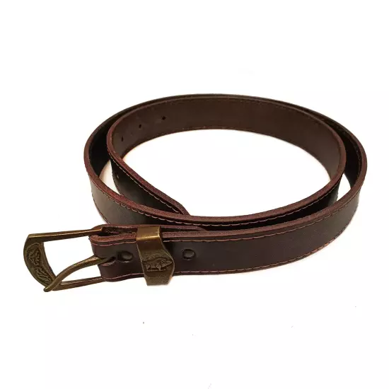 Kožený opasek bez zdobení, 35 mm, hnědý, kanec, spona staromosaz