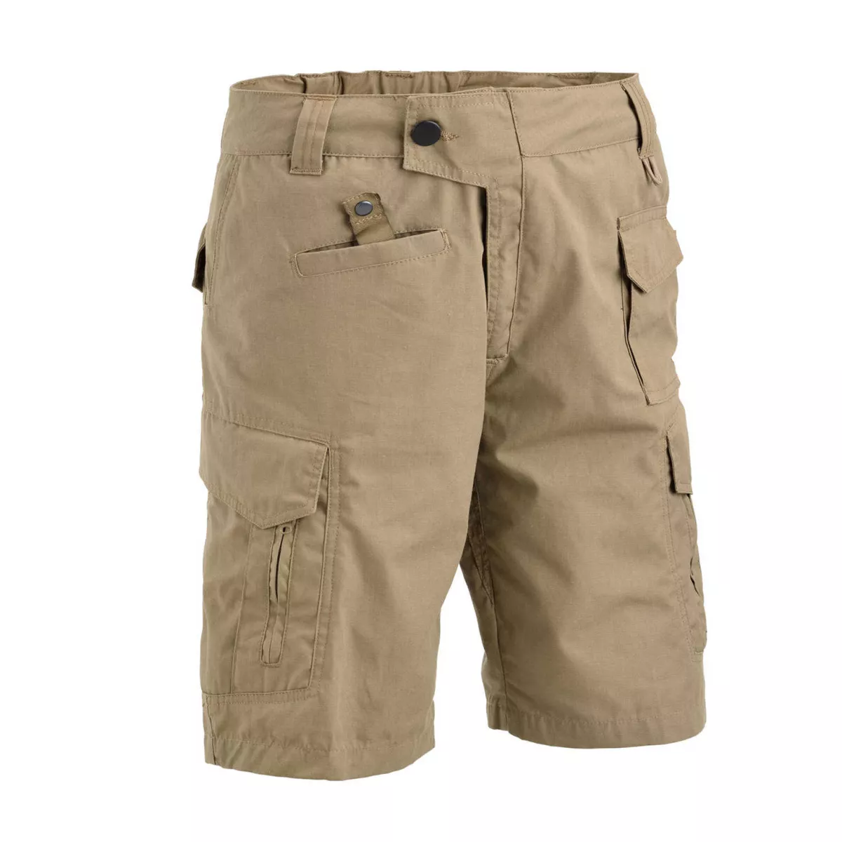 Bermudy „pro každý den“ vyrobené ze 60% bavlny a 40% polyesteru respektují hlavní prvky typické pro taktické kalhoty, ale zároveň přistupují k civilizovanějšímu střihu, takže se dají bez problémů nosit i v civilu.