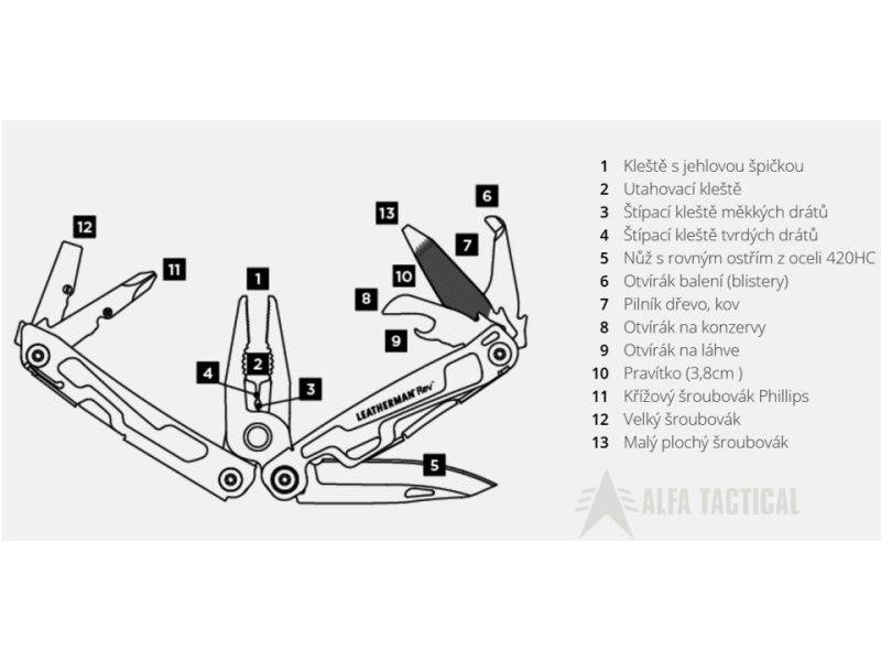 Rev obsahuje 14 nepostradatelných nástrojů, zvenčí přístupnou čepel 420HC a vyměnitelnou kapesní sponu pro snadné přenášení a jako vždy je podpořen 25letou zárukou Leatherman.
