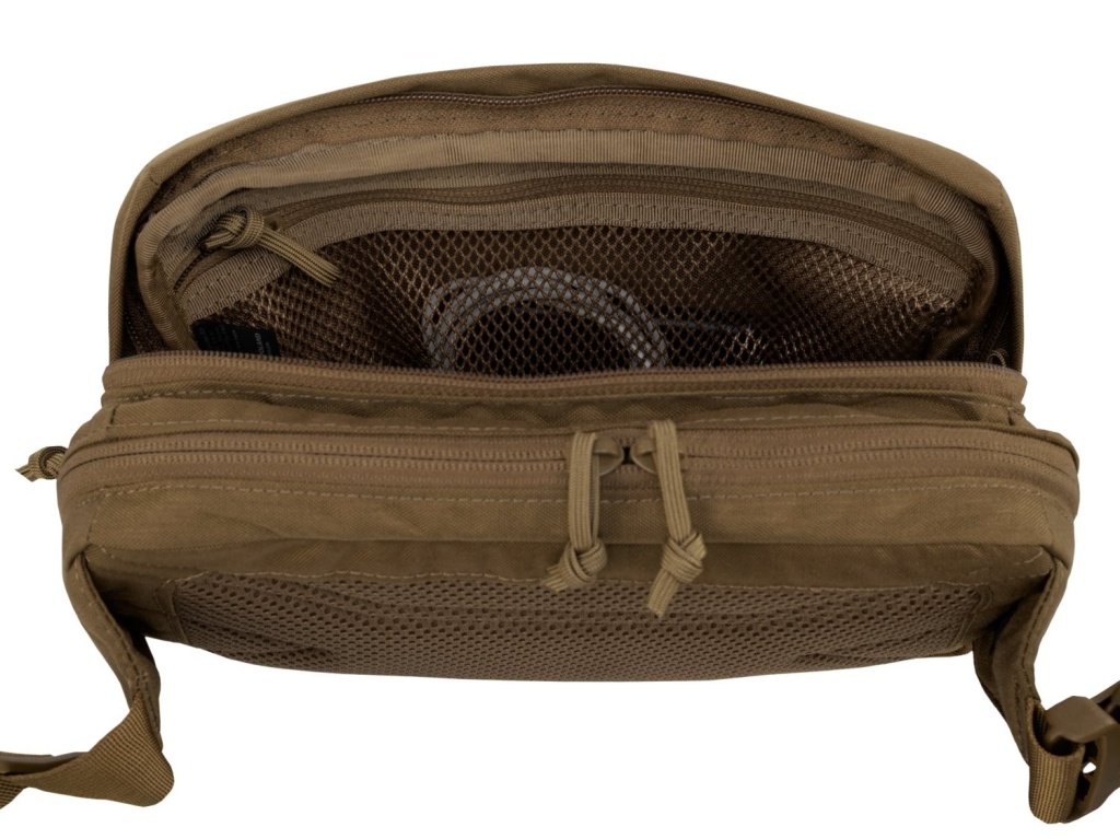 Je kompatibilní s univerzálním Helikon Insert systémem. Můžete ji použít jako EDC organizér nebo taktický pasový batoh pro Vaše zbraně. Dvě větší kapsy se zapínají na oboustranné zipy, což umožňuje rychlý přístup dovnitř. Ledvinky RAT jsou dodávány s pevným odnímatelným panelem s otvory a gumovou tlumicí šňůrou. To se hodí při potřebě okamžitého přístupu k vybavení, např. k lékárničce.