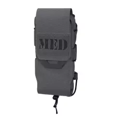 Mírně upravená a aktualizovaná verze lékárničky MED POUCH HORIZONTAL. Největší změnou je viditelnější znak MED na přední straně na laserem vyřezané ploše Velcro®, která umožňuje přidávat různé nášivky, včetně IR značek. Samotné pouzdro má stále nejdůležitější funkce známé z předchozích verzí. Částečně elastický vnější vak pojme ještě více lékařského vybavení a přitom zůstává příjemně kompaktní. Přestože bylo pouzdro navrženo tak, aby se vešlo na zadní stranu MOSQUITO Modular Belt Sleeve®, lze jej použít na jakémkoli povrchu kompatibilním s MOLLE / PALS nebo na opasku o šířce až 45 mm. Pouzdro se vyznačuje snadným oboustranným přístupem pomocí protiskluzových stahováků Hypalon®. Vnitřek se zipem byl navržen tak, aby pevně držel vybavení první pomoci v šikovně navržených elastických smyčkách. Smyčkový suchý zip® na zadní straně vložky umožňuje připevnit pouzdro SHEARS Pouch.