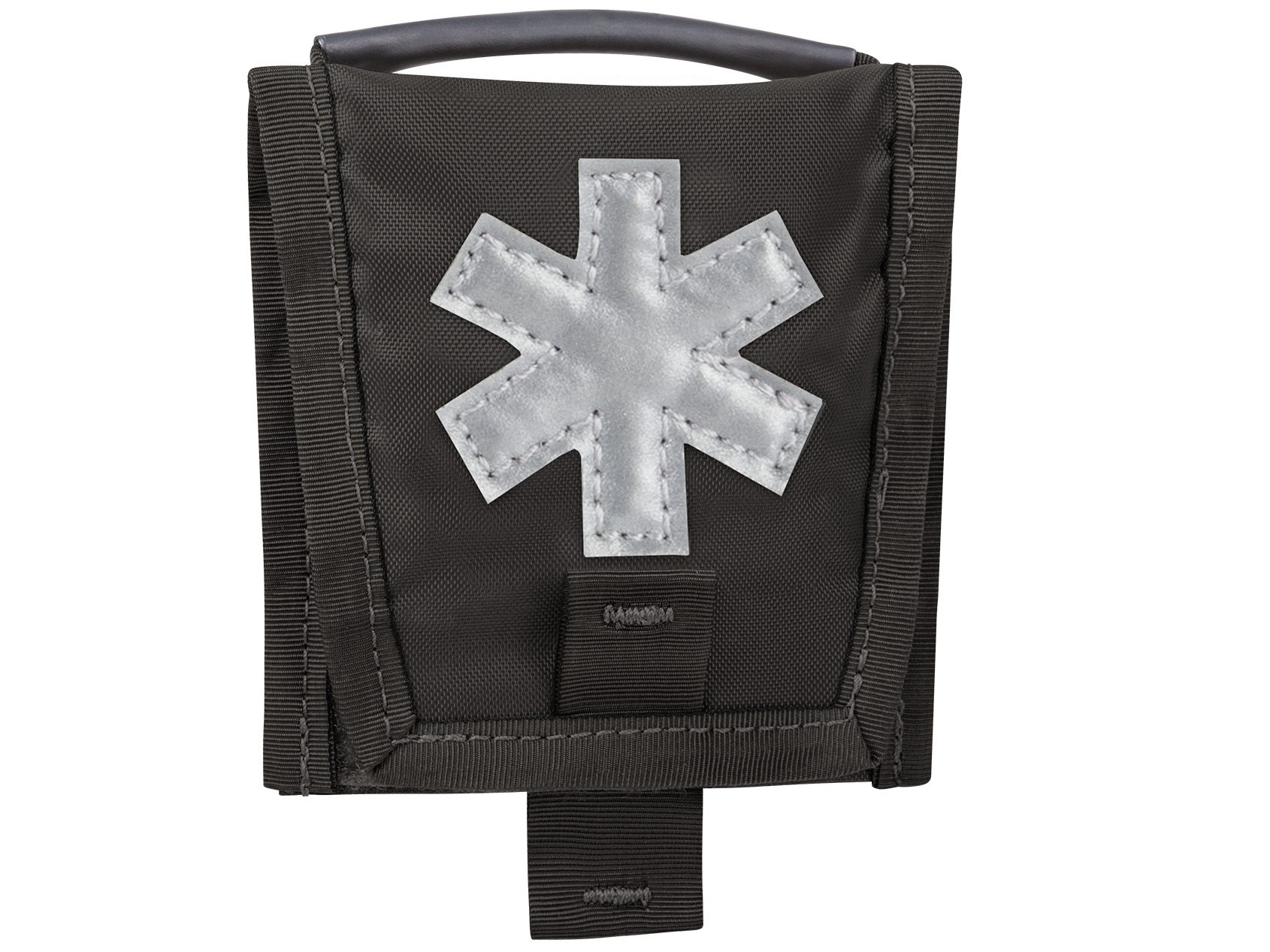 Nejmenší lékárnička Helikon pojme ty nejdůležitější náležitosti, jako jsou vyšetřovací rukavice, náplasti, či jednoduchá resuscitační maska. Gumou potažená rukojeť pomáhá při vytahování z váčku nebo kapsy, zatímco reflexní paramedický kříž umožňuje snadnou identifikaci.