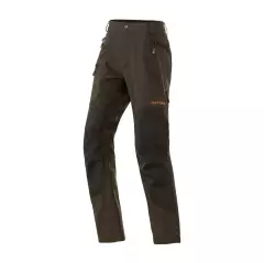 Extrémně pohodlné a robustní lovecké kalhoty na léto a přechodné období, pro pozorování, horský lov a všechny namáhavé aktivity, které vyžadují maximální volnost pohybu a zároveň vysokou odolnost. Kartáčovaný a tudíž nehlučný materiál PS 5000 v kombinaci se silnými pružnými vsadkami v oblasti pasu, přes kolena a v oblasti zad pod sedákem až po oblast lýtek. U tkaniny PS 5000 je každá nit potažena silikonem a tkanina je extrémně hustě tkaná. Díky kombinaci kartáčovaného povrchu a speciální voskové úpravy je PS 5000 vodě a větruodolná, prodyšná, extrémně odolná proti oděru a opotřebení. Ideální jako myslivecké kalhoty.