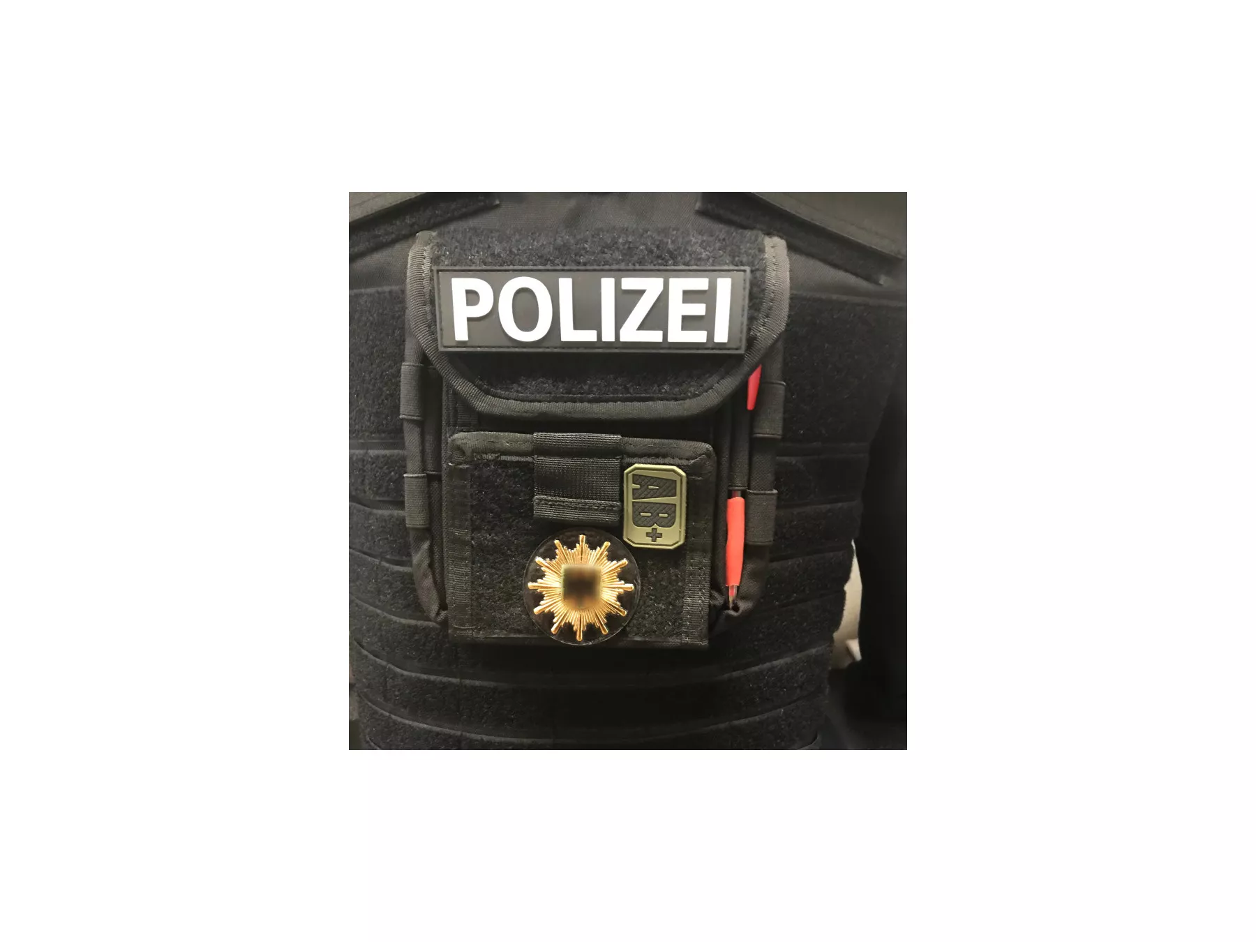 - Přední strana se dvěma oblastmi na suchý zip (10 x 8 cm a 14 x 8 cm) pro připevnění nášivek