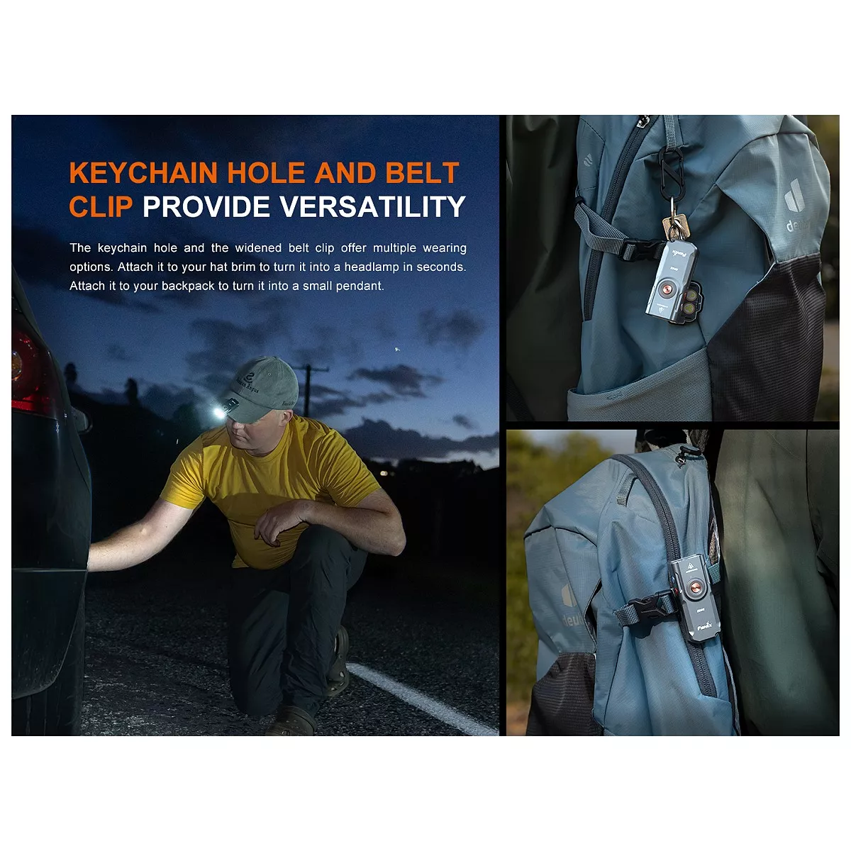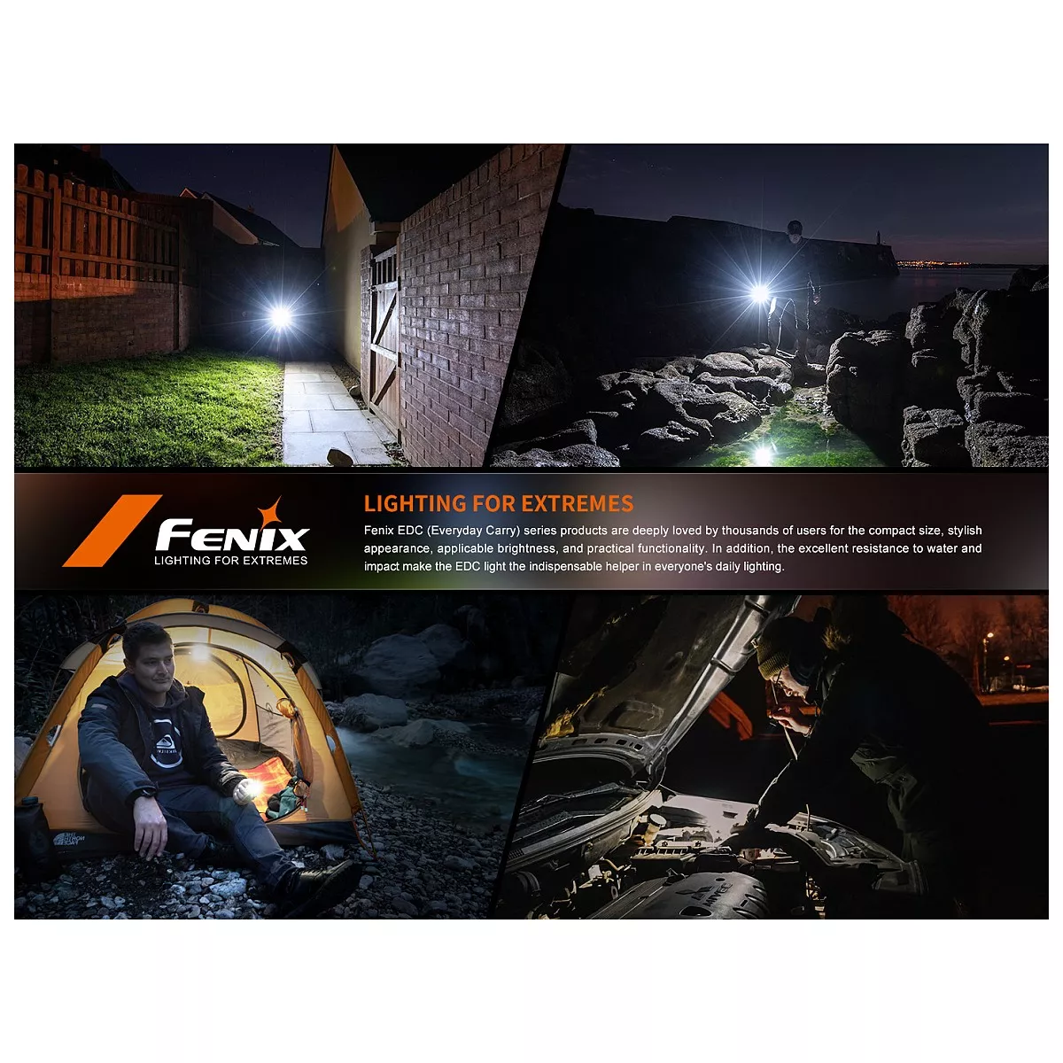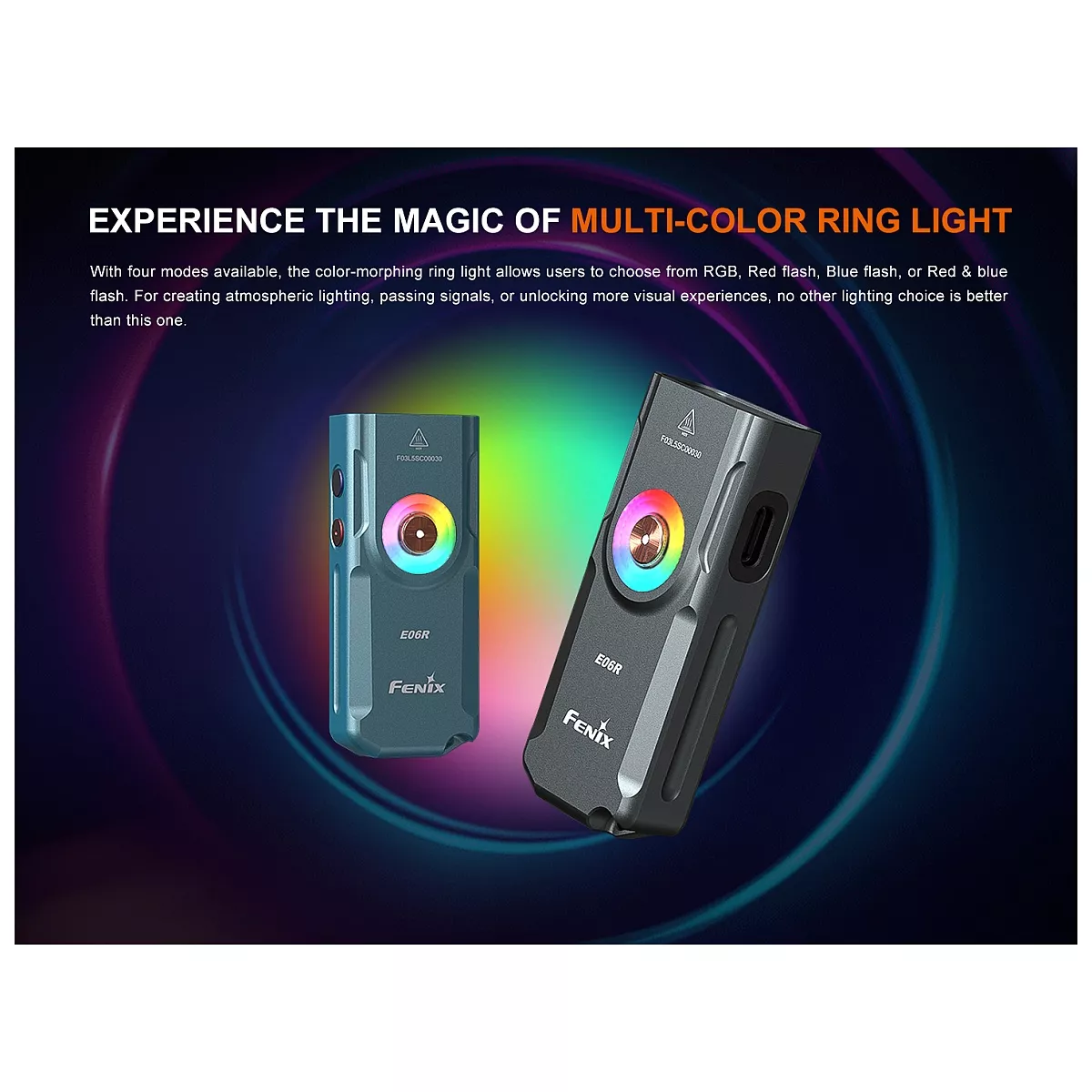 Fenix E06R je větší variantou úspěšné miniaturní nabíjecí svítilny Fenix E03R V2.0. Proti ní má nejen vyšší výkon, ale i ultrafialové světlo a laserové ukazovátko. I přes kompaktní rozměry a váhu pouhých 54 gramů nabízí vysoký světelný tok až 700 lumenů (ANSI). Světelný kužel rovnoměrně osvětluje široký prostor až do vzdálenosti 110 metrů. K napájení slouží integrovaný akumulátor s kapacitou 750 mAh, který se nabíjí přes moderní USB-C konektor na boku svítilny. K dispozici jsou celkem čtyři režimy bílého světla, UV světlo s vlnovou délkou 365 nm o síle 580 mW, červený laser (ukazovátko ≤0,39 mW) a několik režimů tzv. Breathing light - světla okolo spínacího tlačítka o síle 0,5 až 1 lumen, které využijete pro nenápadnou signalizaci, či identifikaci umístění svítilny. Svítilna je dodávána včetně pevného klipu, takže ji můžete uchytit na kapsu, popruh batohu či kšilt čepice a uvolnit si tak při svícení ruce. Díky magnetu v patce svítilny ji můžete přichytit k čemukoli železnému. Praktický je také indikátor stavu nabití baterie v tlačítku. Svítilna je skvělá pro EDC a díky malým rozměrům, plochému tvaru a váze ji můžete mít stále u sebe.