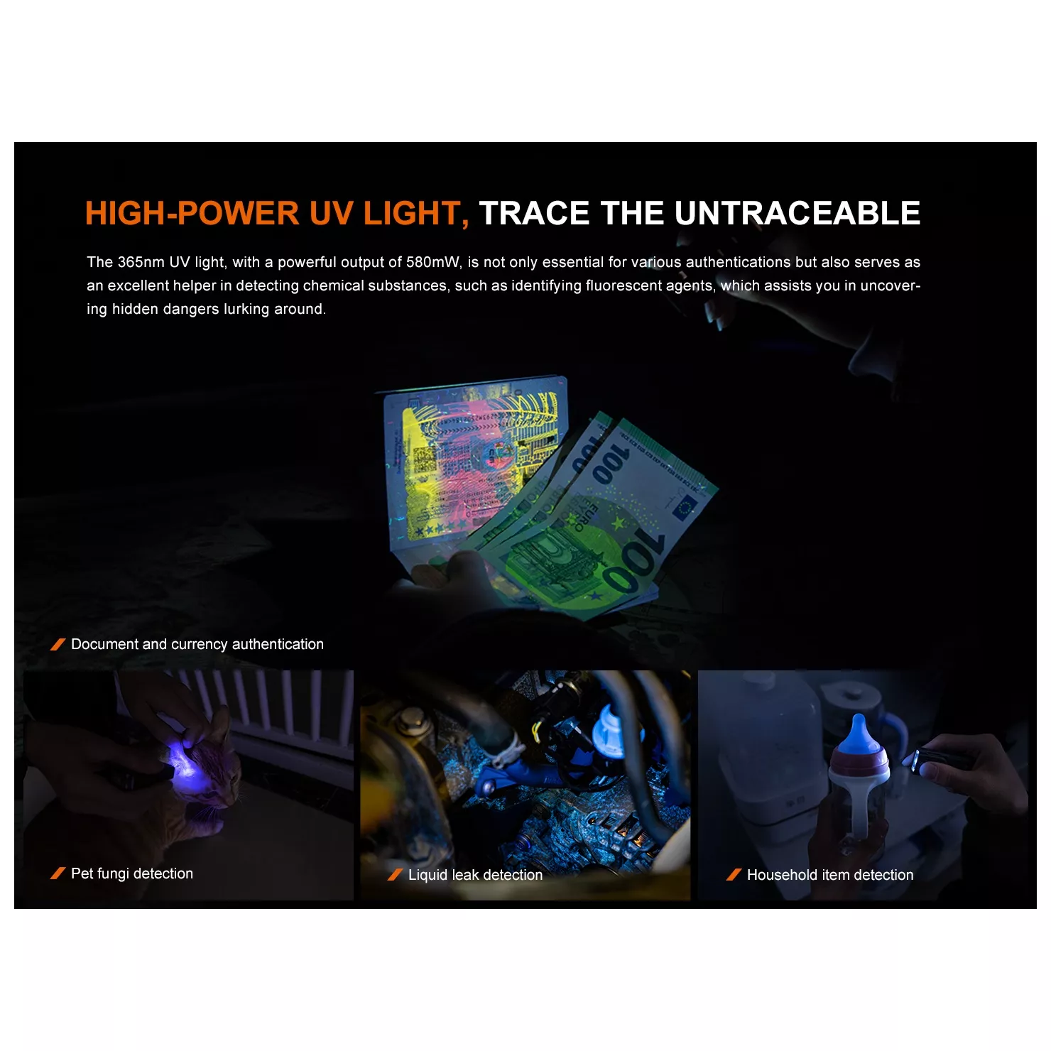 - UV světlo: 580 mW / 365 nm.