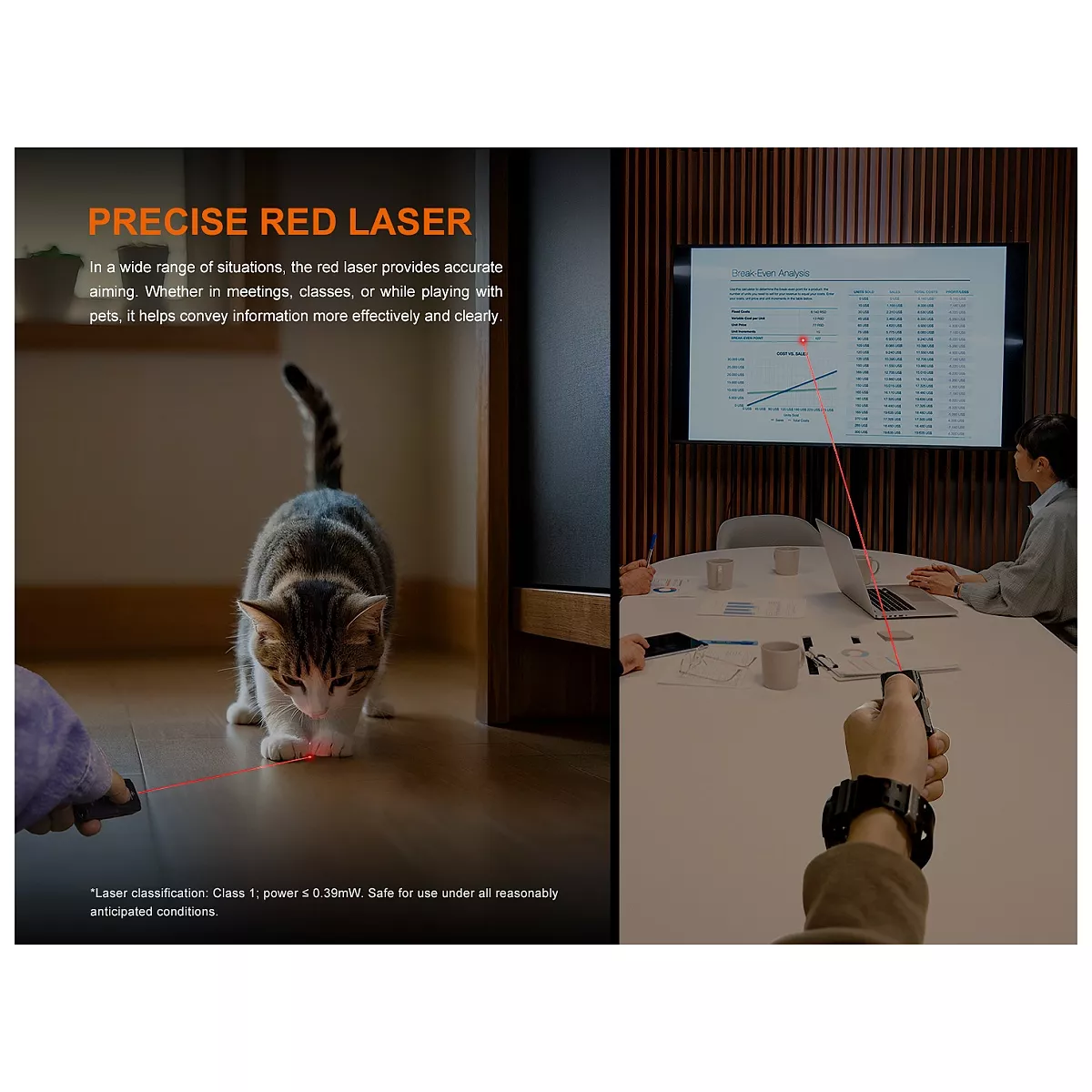 - Červený laser (ukazovátko): ≤ 0,39 mW.