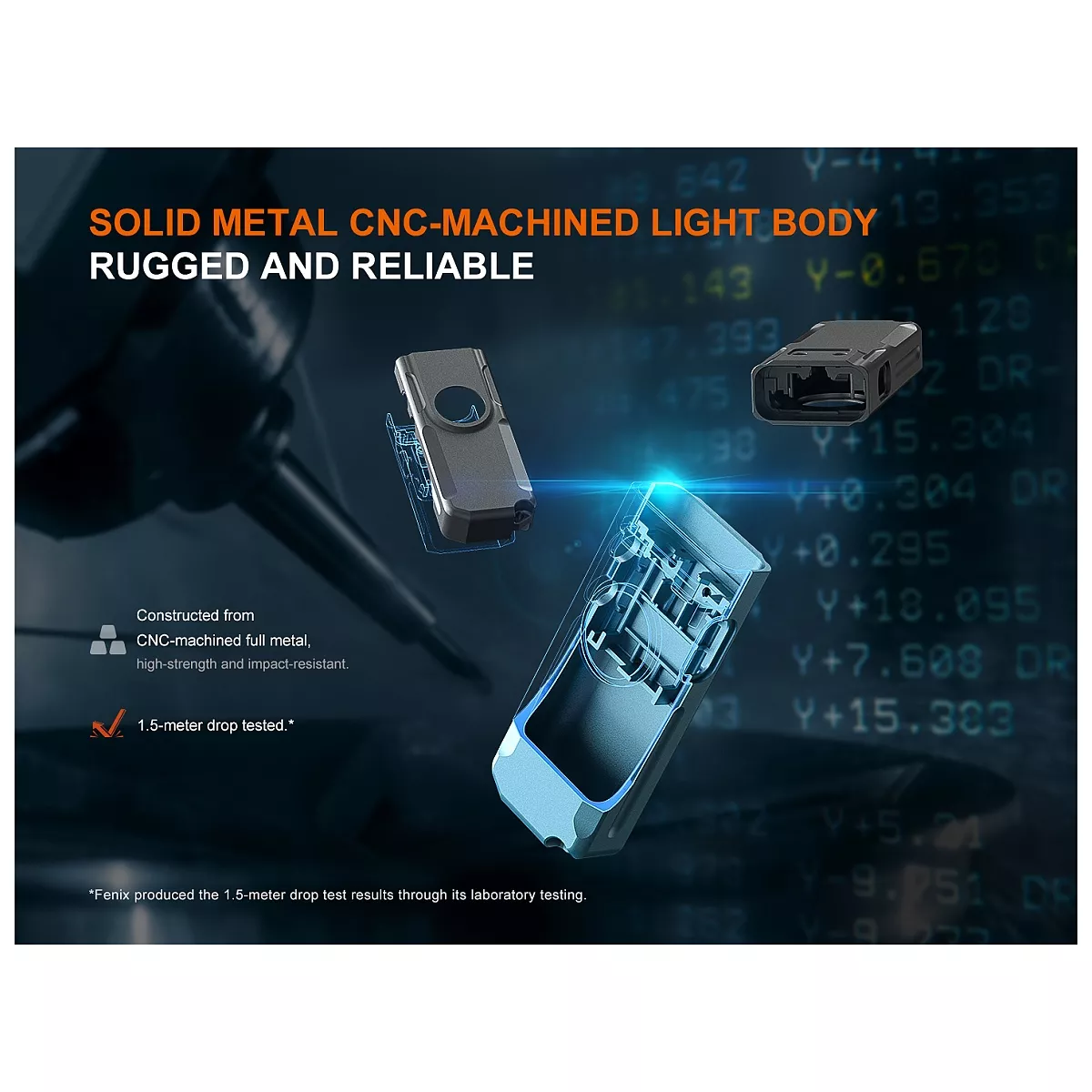 - CNC frézované tělo z hliníkové slitiny s povrchovou úpravou Type III hard anodized proti poškrábání.