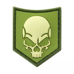 Rebelská 3D nášivka s motivem lebky v barvě multicam. Podšita suchým zipem k upevnění například na čepici, bundu či batoh.
