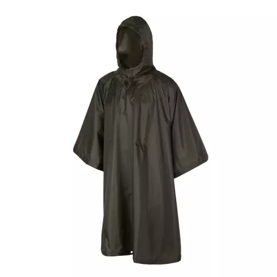 Dešti odolné poncho Helikon s Ripstop úpravou. Ocelové druky umožňují ponchu vytvořit rukávy, nebo spojit dva kusy dohromady a vytvořit tak provizorní a prostorný přístřešek.