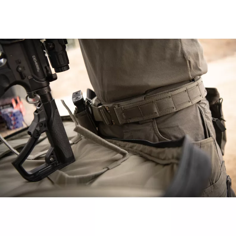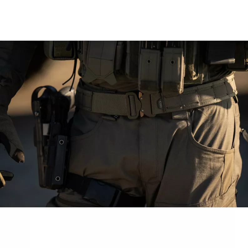 V poli má člověk důležitější věci na práci, než je špatně držící, nepohodlný opasek. Proto je zde 1,75” široký bojový opasek 5.11 Maverick. Je navržen jako systém vnitřního a vnějšího opasku a vyznačuje se ergonomickou křivkou pro maximální pohodlí a stabilitu. Vnitřní nylonový pás zajišťuje podporu a padnutí, zatímco vnější pás pevně zajišťuje smyčkou.