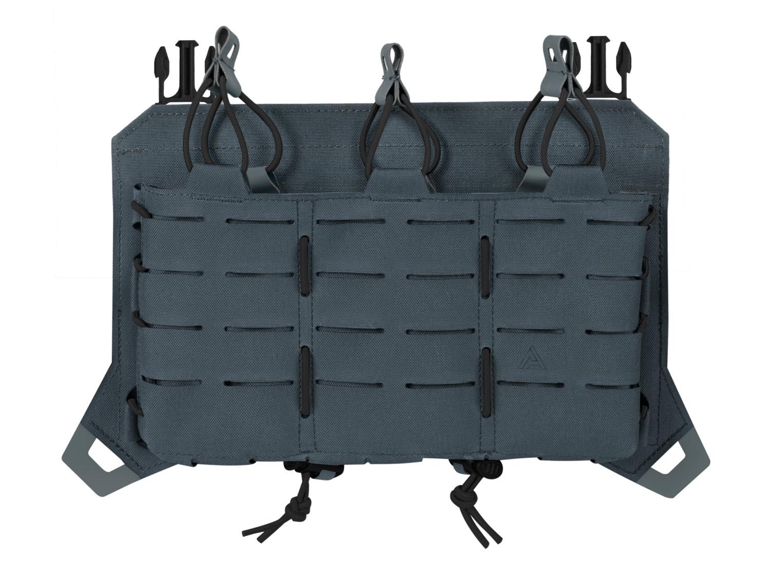 SPITFIRE TRIPLE RIFLE MAGAZINE FLAP je přídavný panel pro vestu SPITFIRE. Umožňuje nošení tří zásobníků na pušky pro platformy AR, AK nebo SR. Elastické horní rukojeti vyrobené z protiskluzového materiálu Hypalon zajišťují zásobníky. Přední plocha je pokryta laserem řezaným modulárním systémem MOLLE / PALS. Panel se připevňuje k vyhrazeným otvorům na SPITFIRE nebo k rozhraní hrudní soupravy pomocí přiložených spon pro QD konfigurace.
