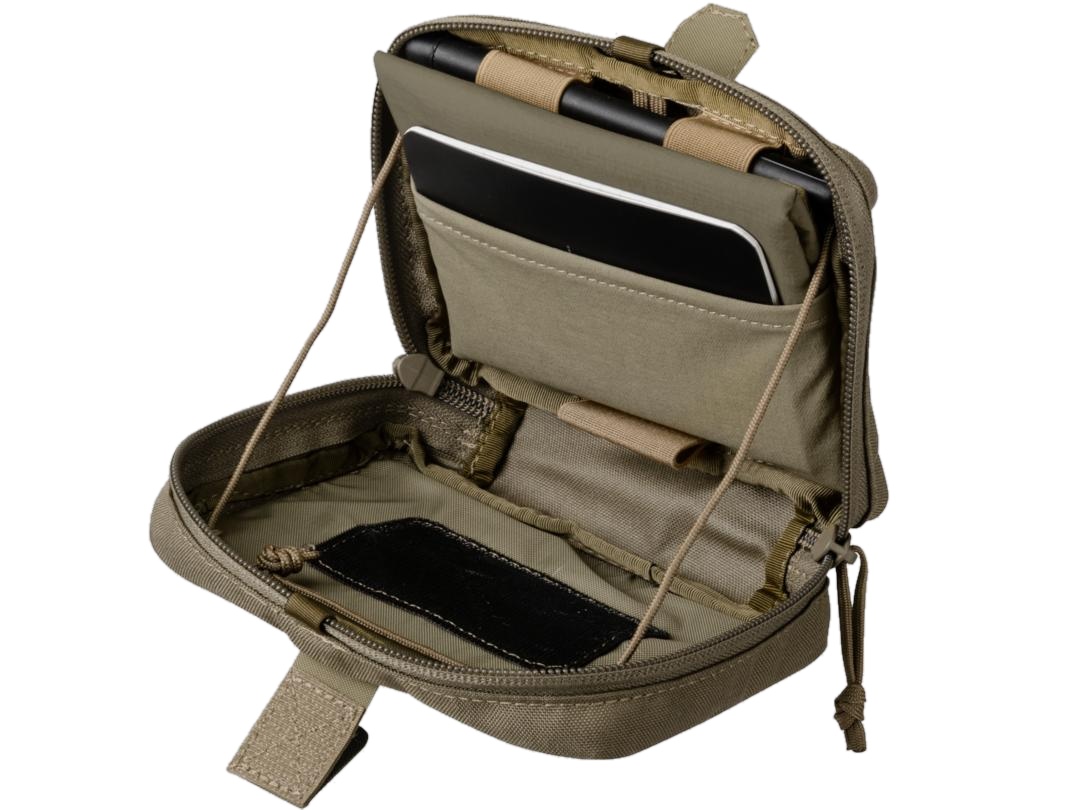 JTAC Admin Pouch je kompaktní řešení pro přenášení smartphonu, mapy, poznámkového bloku atd. během jakýchkoli terénních operací. Zipovaná a částečně vyztužená hlavní část má otevírání ve stylu mušle se šňůrkami, které zabraňují vypadnutí vašeho vybavení. Vnitřní kapsa je určena hlavně pro přiložené pouzdro na mapu, ale snadno pojme jakýkoli malý poznámkový blok. Přední panel Velcro® v kombinaci se systémem MOLLE / PALS lze použít pro IFF nášivku nebo vlajku.