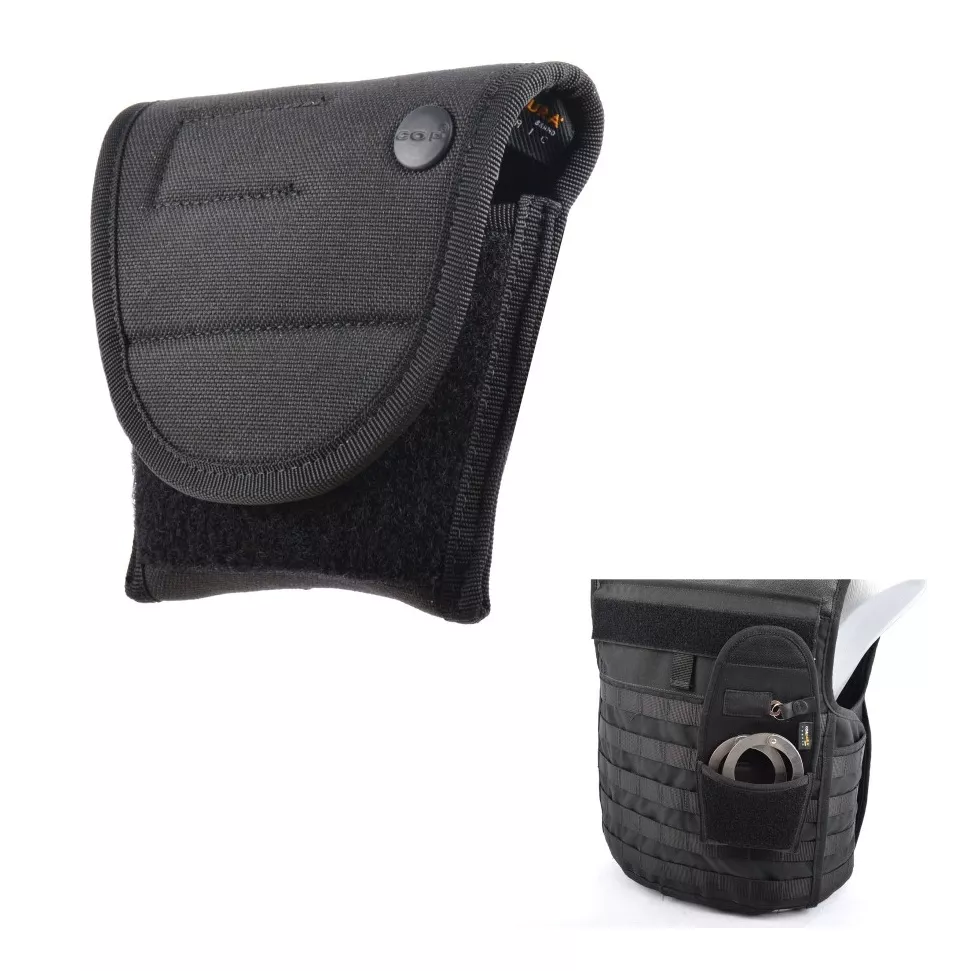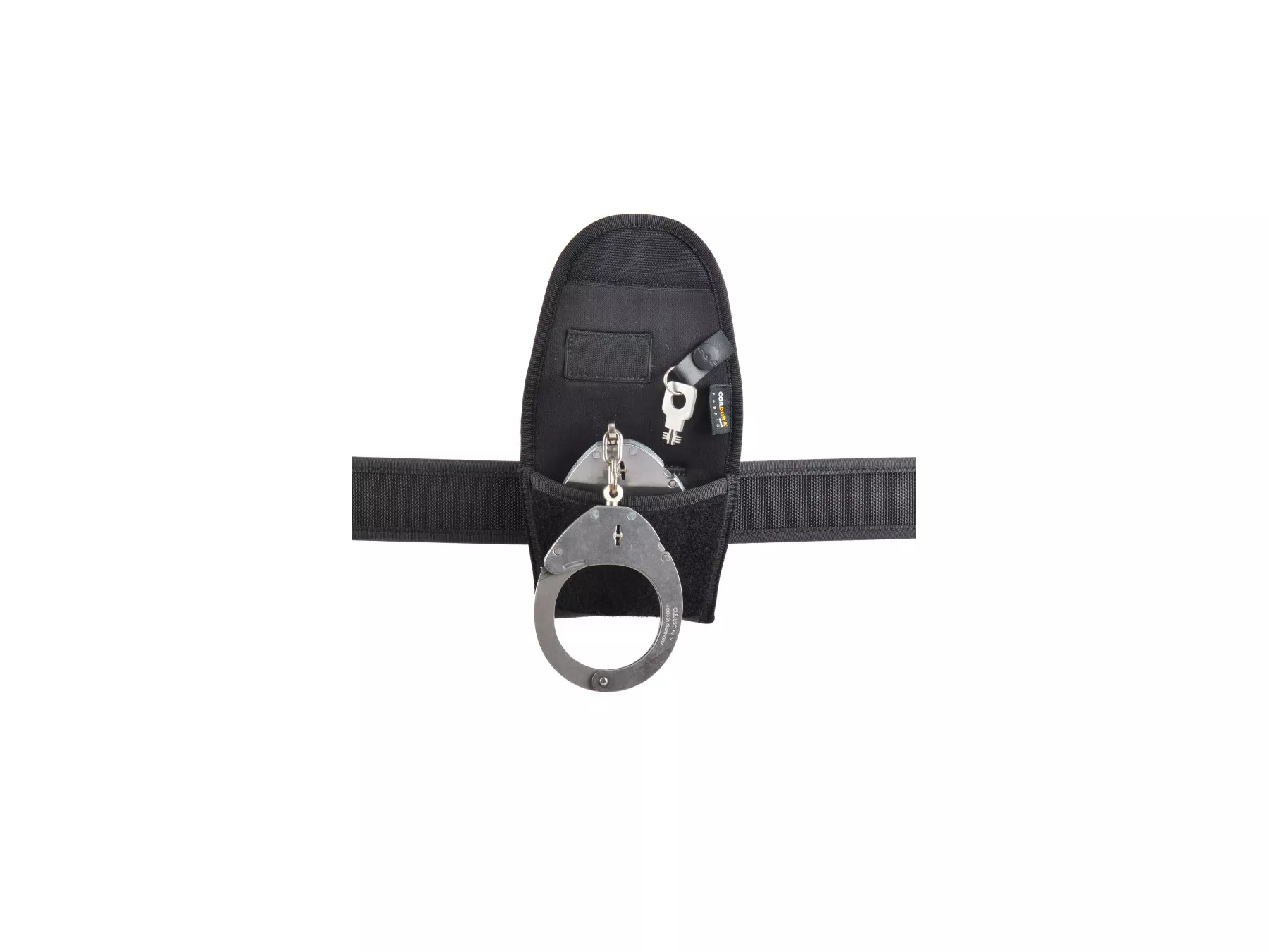 Uzavřené pouzdro na pouta, vyrobené z vysoce kvalitní Cordury® s tkanou strukturou a vysokým tělem pouzdra. Klopa se zapínáním na suchý zip. Uvnitř možnost zapínání na klíč od pout. Klíč je zajištěn tlačítkem na klopě a lze jej velmi snadno a rychle vyjmout.