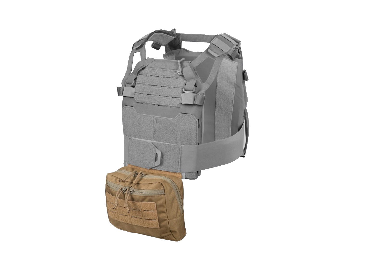 Největším problémem při nošení nosiče plátů a pásu je nedostatečná možnost připevnění čehokoli na přední stranu. A jak všichni víme, nikdy není příliš mnoho přepravního prostoru. Proto se společnost Direct Action při výrobě SPITFIRE MK II rozhodla navrhnout toto malé pouzdro. Připevňuje se přímo na přední panel smyčky nosiče plátů. Do pouzdra se vejde vše, co potřebujete - několik drobností, mobilní telefon, náhradní špunty do uší, zásobníky na pistole nebo dokonce jedno z pouzder Direct Action MED. Přední strana má velký smyčkový panel pro nášivky a také kus modulárního systému řezaného laserem. Toto pouzdro je dokonalým doplňkem nejen k těžší konfiguraci, ale také k menším sadám CQB, pokud potřebujete umístit vše dopředu.